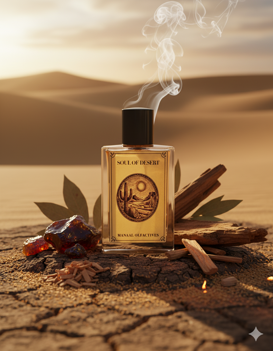 Soul of Desert is not just a fragrance — it’s a handcrafted journey into the heart of solitude and power. Built entirely from scratch in our lab, this creation is our tribute to the mystical charm of Andy Tauer’s Au Coeur du Désert, reimagined through the artistry and precision of Manaal Olfactives.